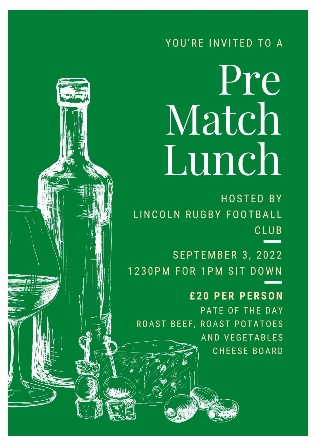 Please book by emailing clubmanager@lincolnrugbyclub.co.uk or calling 01522595523