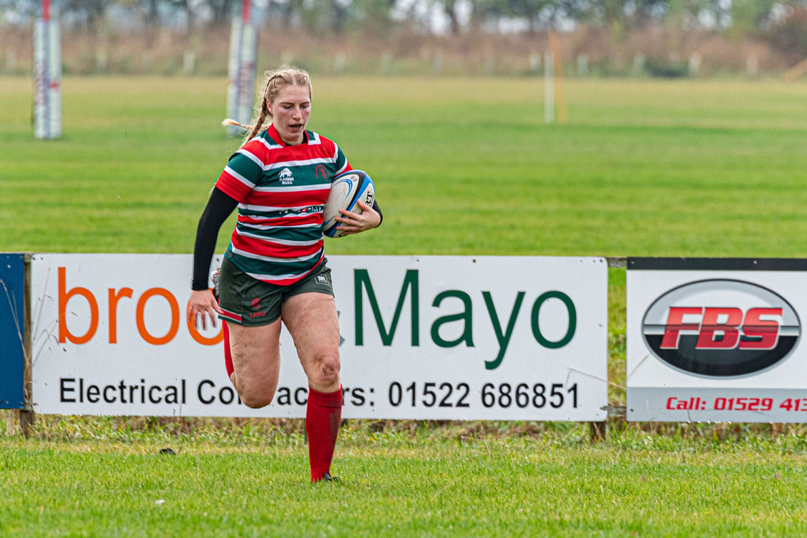 Good work from the kick-off saw Lincoln take the ball over the 10 metre line and out wide through all the backs to Waters, who ran 35 metres to score. Liv Smith slotted over the conversion to give Lincoln a 45-0 lead going in at the break.